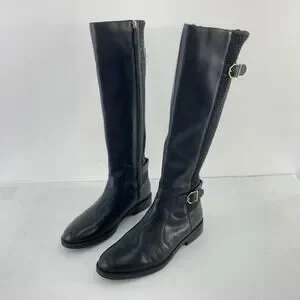 Cole Haan Black Leather Tall Knee-High Quilted Riding Boots Women's Size 9.5