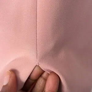 Portrait Neckline, seamed waist, pencil-skirt silhouette, offset front slit