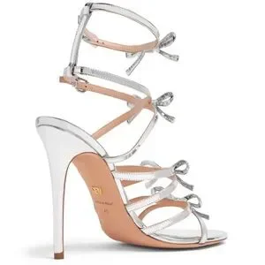 Through its footwear, Giambattista Valli fuses impeccable leather craftsmanship with a whimsical style. A signature brand silhouette, these metallic leather heels are defined by their delicate bow embellishments. Made in Italy
