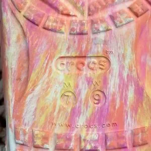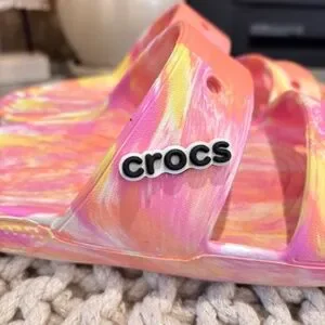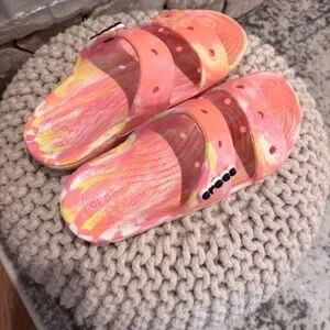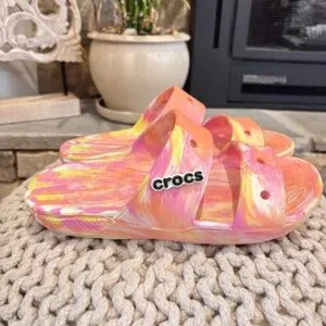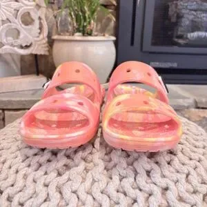 Crocs Classic Peach Orange Marble Tie Dye Sandal Two Strap w/ Accent SZ 9