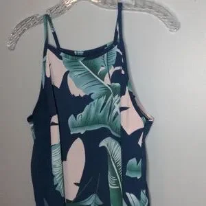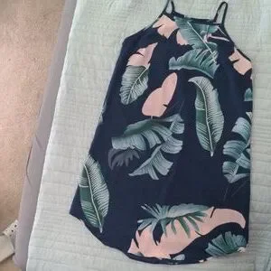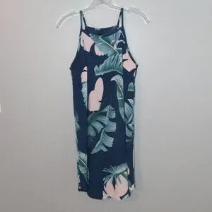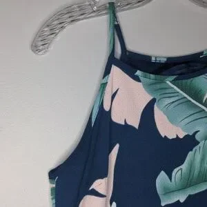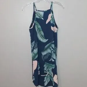 EUC✨medium high neck blue tropical print spaghetti strap dress