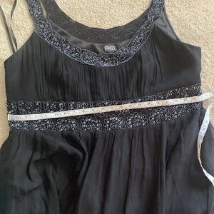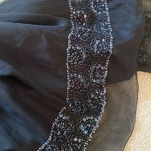 Excellent condition size 20W Adrianna Papell evening dress black with beading. Light tulle with lining. 59inches long and 23 inches pit to pit lying flat. Side zipper. 21 inches at the beading under bustline lying flat. Worn once at wedding