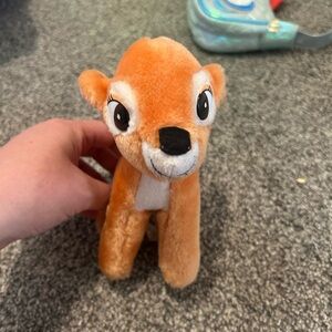 Adorable orange plush deer toy with white accents. Perfect for cuddling.