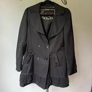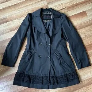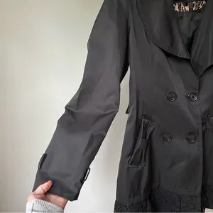 Betsey Johnson Black Trench Coat with Ruffled Hem