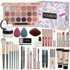 Venshun makeup organizer box with vibrant illustrations. Ideal for cosmetics storage.Full-set Women'S Cosmetics Set, Including An Eyeshadow Palette, Foundation And Facial Base Makeup, Makeup Brushes, Makeup Sponges, Lip Gloss, Eyeliner, And An 18-color Eyeshadow Set. The Easter Makeup Gift Box Is An Ideal Mother'S Day Gift For Women.
