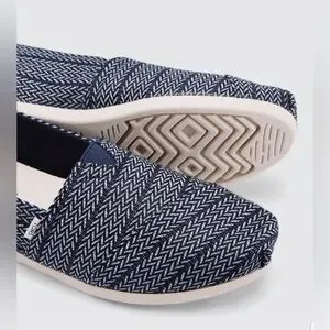 TOMS Womens Alpargata Round Toe Woven Classics Espadrille Navy Herringbone