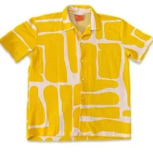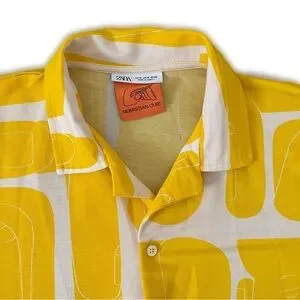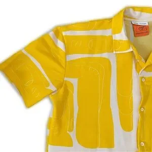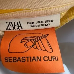 Zara Limited Run Sebastian Curi Yellow Graphic Button Down Casual Polo Shirt M
