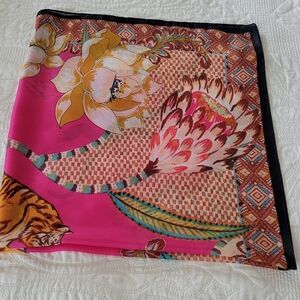 Large scarf by Vince Camuto 34"X35" Bright pink scarf featuring a tiger and floral pattern. Perfect for adding a pop of color.