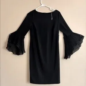 Shelby & Palmer Black Ruffled Bell Sleeve Sheath Dress