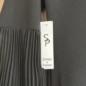 This sophisticated black dress by Shelby & Palmer is perfect for a cocktail night out, featuring dramatic ruffled bell sleeves and a classic bateau neckline. The sheath style offers a timeless silhouette, making it an elegant choice for any evening occasion.
