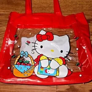 Vintage Sanrio Hello Kitty Cherries Plastic Tote Bag - 90s
