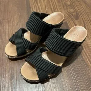 UGG Wedge Sandals Australian Hilarie Black Leather and Elastic straps - 7