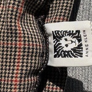 Chic Anne Klein pants with a classic houndstooth pattern. Features red and black accents for a stylish touch.