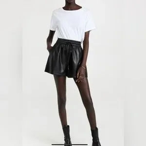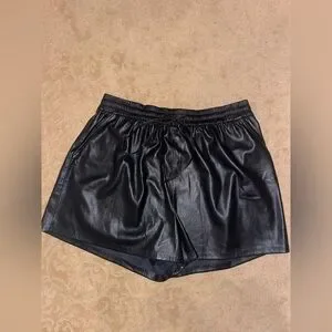 Good American black better than leather high waisted elastic shorts