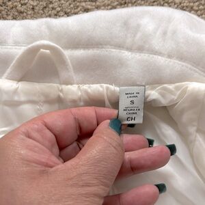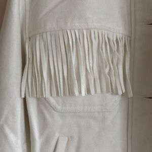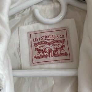 This Levi's jacket in a crisp white color offers a sleek and modern look. Featuring a cropped length and a classic collar, it is perfect for adding a touch of sophistication to any outfit. The structured shoulders and clean design make it a versatile piece for various occasions.
