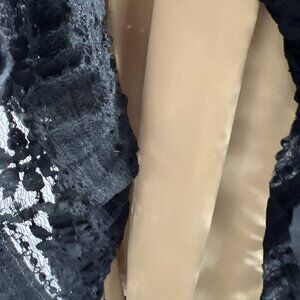 Max Studio Sheath Dress Small Black Nude Lace Stretch Ruffle V-Neck Whimsygoth