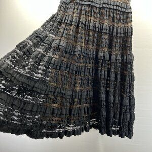 Max Studio Sheath Dress Small Black Nude Lace Stretch Ruffle V-Neck Sleeveless Whimsygoth