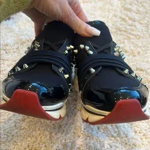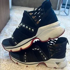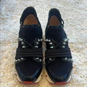Authentic Christian Louboutin Black and Silver Studded Sneakers