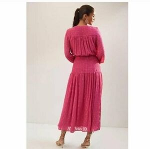 NWT Anthropologie Smocked Maxi Dress M $180 HTF Pink Gold Long Sleeve