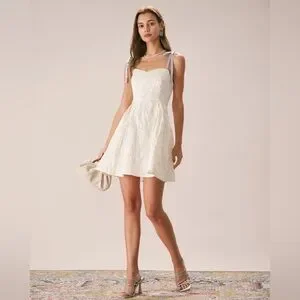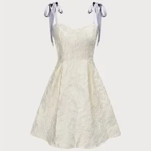 Rihoas Off White Jacquard Tie Strap Mini Dress