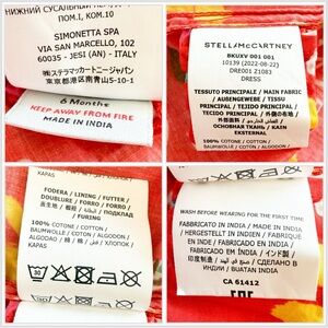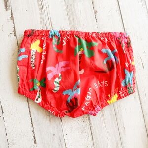 NWT Stella McCartney red palm tree summer dress with matching bloomers, baby girls size 6 months. Bright red with colorful palm trees. 100% organic cotton. Original retail $94.