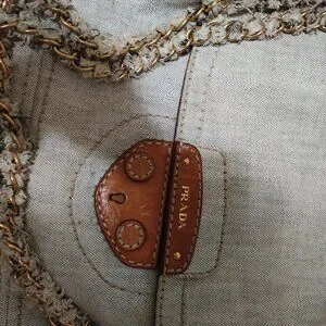 Vintage 2000’s Prada shoulder bag. Denim fabric with brown accents. Stylish chain strap. It’s like a mini tote bag. Would make a super cute diaper bag.