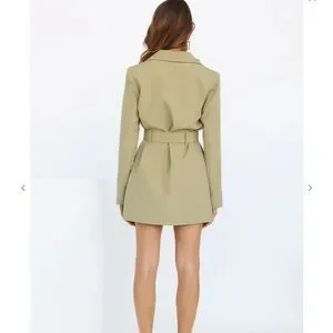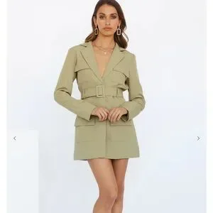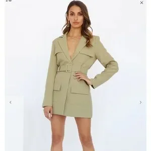 Elevate your wardrobe with this stunning used Lioness Steinway V Neck Blazer Mini Dress in a gorgeous sage green color. This XS size dress features a flattering v neck cut and a stylish tie detail, adding a touch of sophistication to your look. The blazer-style design adds a chic element, perfect for any special occasion or night out. Made by the renowned brand Lioness, you can trust the quality and style of this unique piece. Pair it with heels and statement jewelry for a complete and fashionable outfit. Don't miss out on this must-have dress that will make you stand out from the crowd!