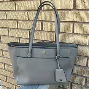 Excellent condition like new!! Experience the perfect blend of style and practicality with the Tory Burch Gray Tote. Crafted from structured leather, this tote features a minimalist design with a spacious interior, making it ideal for everyday use. Its elegant gray hue and durable construction ensure it remains a timeless addition to your collection. Width (at base): 10.5"