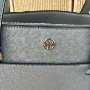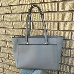 Tory Burch Gray Structured Leather Tote