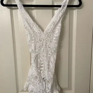 Elegant lace lingerie bodysuit. This was brand new with the tags, but they got pulled off as I was packing up clothes! Never been worn. Snap closure.
