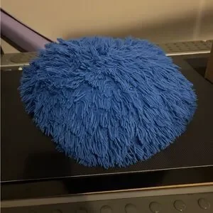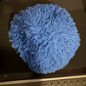 Soft and plush blue shaggy round pillow. Perfect for adding a pop of color to any room.