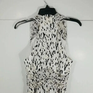 Elegant asymmetrical dress by Shona Joy. Features a striking black and white pattern. Perfect for any occasion.