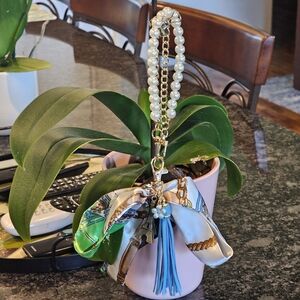 Add a touch of elegance to your accessories with this checkered keychain bag charm. Featuring a classic brown pattern and a chic blue tassel, it's perfect for enhancing any bag.