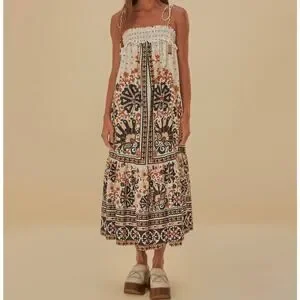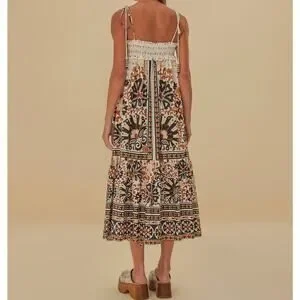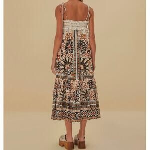 Farm Rio | Flower Fan Tapestry Off-White Midi Dress