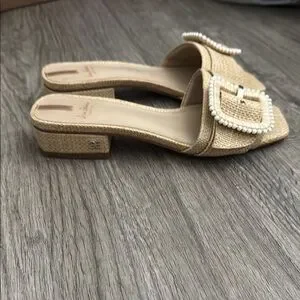 Experience the perfect blend of style and comfort with these tan slide sandals from Sam Edelman. Featuring a sophisticated woven strap and a striking rhinestone-embellished buckle, these sandals are designed for effortless elegance. The flat sole and open toe design make them an ideal choice for casual summer outings.