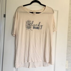 Cream t-shirt with a floral graphic and Lucky Brand logo. Casual and stylish. Size extra large excellent pre-owned condition. Smoke free home.
