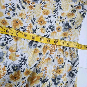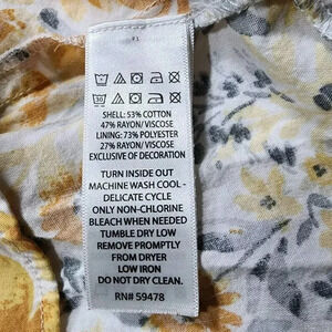 The yellow floral pattern adds a touch of bohemian charm, while the tiered design creates a flattering silhouette. The dress is machine washable and comes in size 10. Perfect for any season, this dress is a versatile addition to any wardrobe.