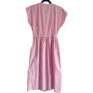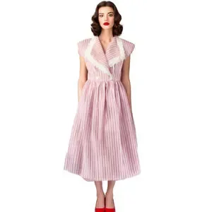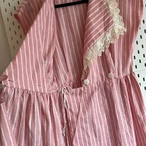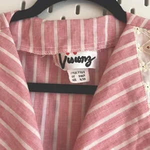VINTAGE Red & White Stripe Midi Wrap Dress with Lace Collar Summer Dress Made US