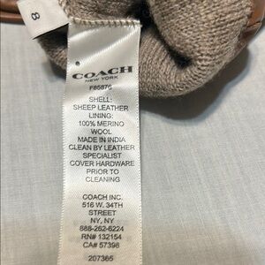 NWOT Coach Elegant Brown Leather Gloves