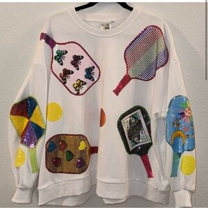Get ready to hit the court in style with the Funky Pickleball sweatshirt by Queen of Sparkles! This unique sweatshirt features a funky design and is perfect for any pickleball enthusiast. Stay warm and stand out from the crowd with this sweatshirt. Game on!