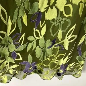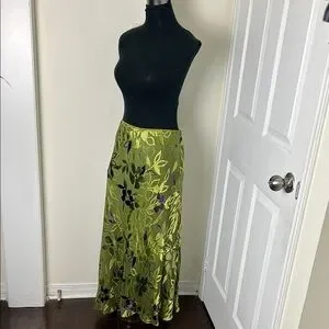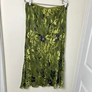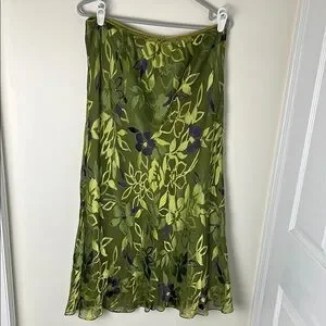 In excellent preowned condition size 14, style to clueless chic comfort. Embrace elegance with this floral green skirt. Perfect for any occasion, its vibrant design adds a touch of nature to your wardrobe. Measurements taken flat lay , waist 16”, length of slip skirt 36.5”, skirt is lined , elastane waist for easy fitting, perfect for any special occasion or event, style for a sophisticated chic look