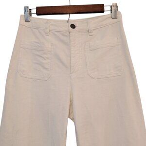 Faherty Womens Size 26 Egret White Corduroy Patch Pockets Wide Leg Pants Flaw