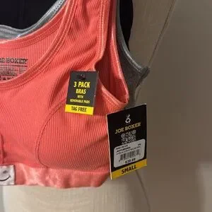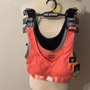 Set of three Joe Boxer bras. Includes Coral, gray, and black. Soft and supportive.