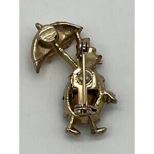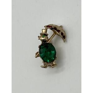 Vintage Goldtone Small Turtle with Umbrella Green & Red Rhinestones Pin Brooch
