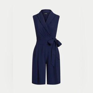 Lauren Ralph Lauren Belted Georgette Sleeveless Romper Refined Navy Size 10