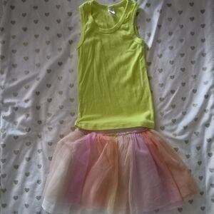Brighten up playtime with this vibrant kids' rainbow tutu outfit, in a size 5. Featuring a lively yellow ribbed tank top and a rainbow tutu skirt, it's perfect for dress-up and parties or just because. Matched together pieces. See photos. Ask if you have questions. Thanks for stopping by!