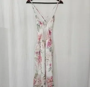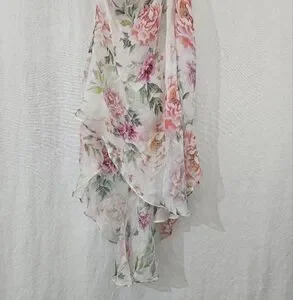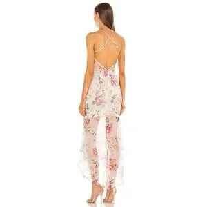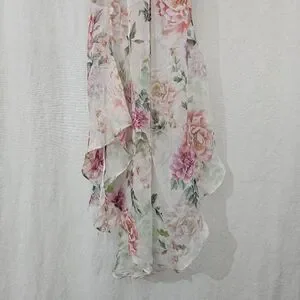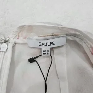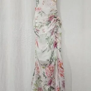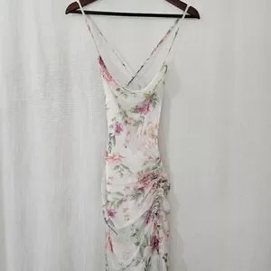 Sau Lee Frieda Silk Cowl Neck High Low Ruched Dress in White Pink Floral Size 4