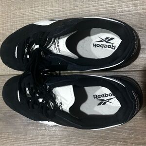 Experience the perfect blend of style and comfort with Reebok's black and white sneakers. Featuring a sleek, retro-inspired design, these low-top sneakers boast a classic black suede upper with white accents and a distinctive logo panel. The gum-colored rubber sole adds a touch of vintage flair, making them ideal for casual outings.