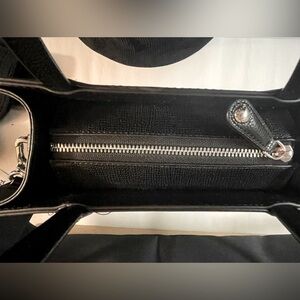 SILVER TONE HARDWARE May APPEAR DARK COLOR DUE TO LIGHTING. BLACK LIGHTISH GREY AND WHITE
