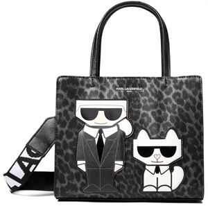 Karl Lagerfeld Paris BLACK LEOPARD Logo CROSSBODY SATCHEL SHOULDER NEW